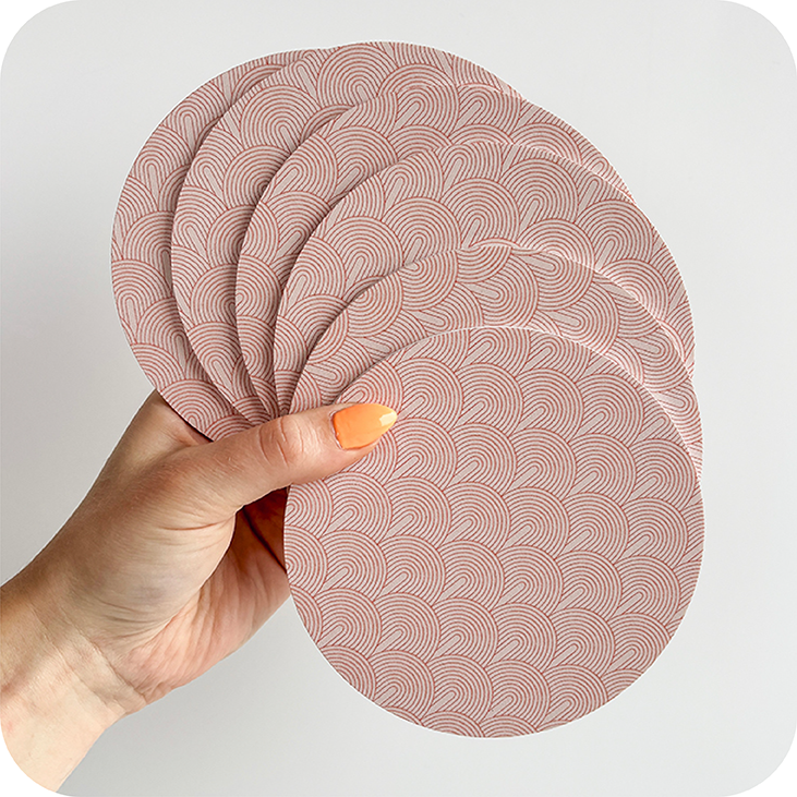 De onderzetters zijn gemaakt van 3mm dik kunststof. Je kent het materiaal misschien van onze mini cirkels. We ontdekten dat dit materiaal zich perfect leent voor onderzetters, we hebben zelfs gehoord dat de onderzetters ‘gooi-proef’ zijn van een moeder met een peuter.